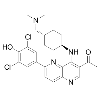 Smiles C(=O)(C1=C(N[C@H]2CC[C@H](CN(C)C)CC2)C2C(N=C1)=CC=C(C1=CC(Cl)=C(O)C(Cl)=C1)N=2)C