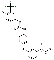 Smiles C(C(NC)=O)1=NC=CC(OC2=CC=C(NC(NC3=CC=C(Cl)C(C(F)(F)F)=C3)=O)C=C2)=C1
