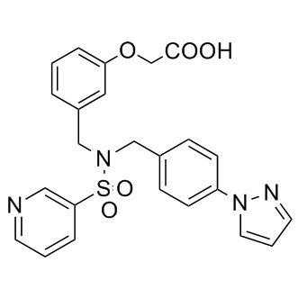 Smiles O=S(C1=CN=CC=C1)(N(CC2=CC(OCC(O)=O)=CC=C2)CC3=CC=C(N4C=CC=N4)C=C3)=O