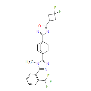 Smiles FC1(C([H])([H])C([H])(C1([H])[H])C1=NC(C23C([H])([H])C([H])([H])C(C4=NN=C(C5=C([H])C([H])=C([H])C([H])=C5C(F)(F)F)N4C([H])([H])[H])(C([H])([H])C2([H])[H])C([H])([H])C3([H])[H])=NO1)F