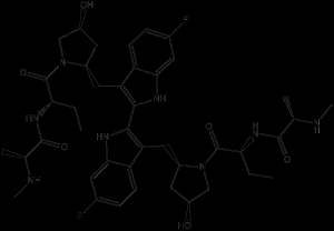 (2S, 2'S)-N, N'-((2S, 2'S)-((3S, 3'S, 5R, 5'R)-5, 5'-((6, 6'-difluoro-1H, 1'H-[2, 2'-biindole]-3, 3'-diyl)bis(methylene))bis(3-hydroxypyrrolidine-5, 1-diyl))bis(1-oxobutane-2, 1-diyl))bis(2-(methylamino)propanamide)