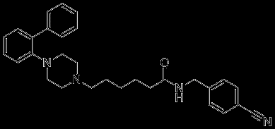 O=C(NCC1=CC=C(C#N)C=C1)CCCCCN2CCN(C3=CC=CC=C3C4=CC=CC=C4)CC2