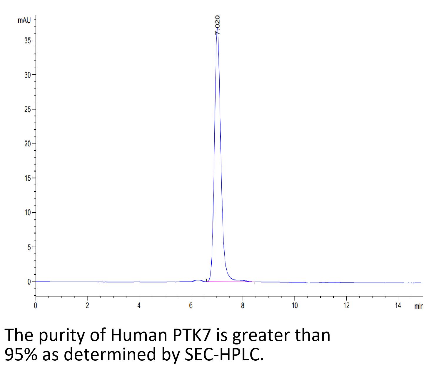 Recombinant Human PTK7/CCK4 Protein is expressed from HEK293 with His tag at the C-Terminus.It contains Ala31-Thr704.