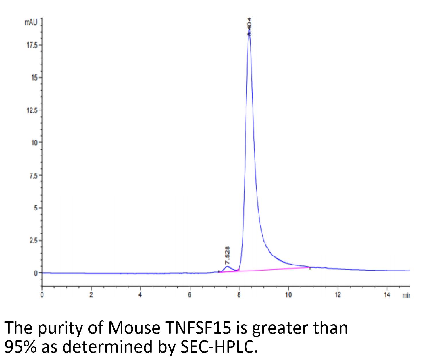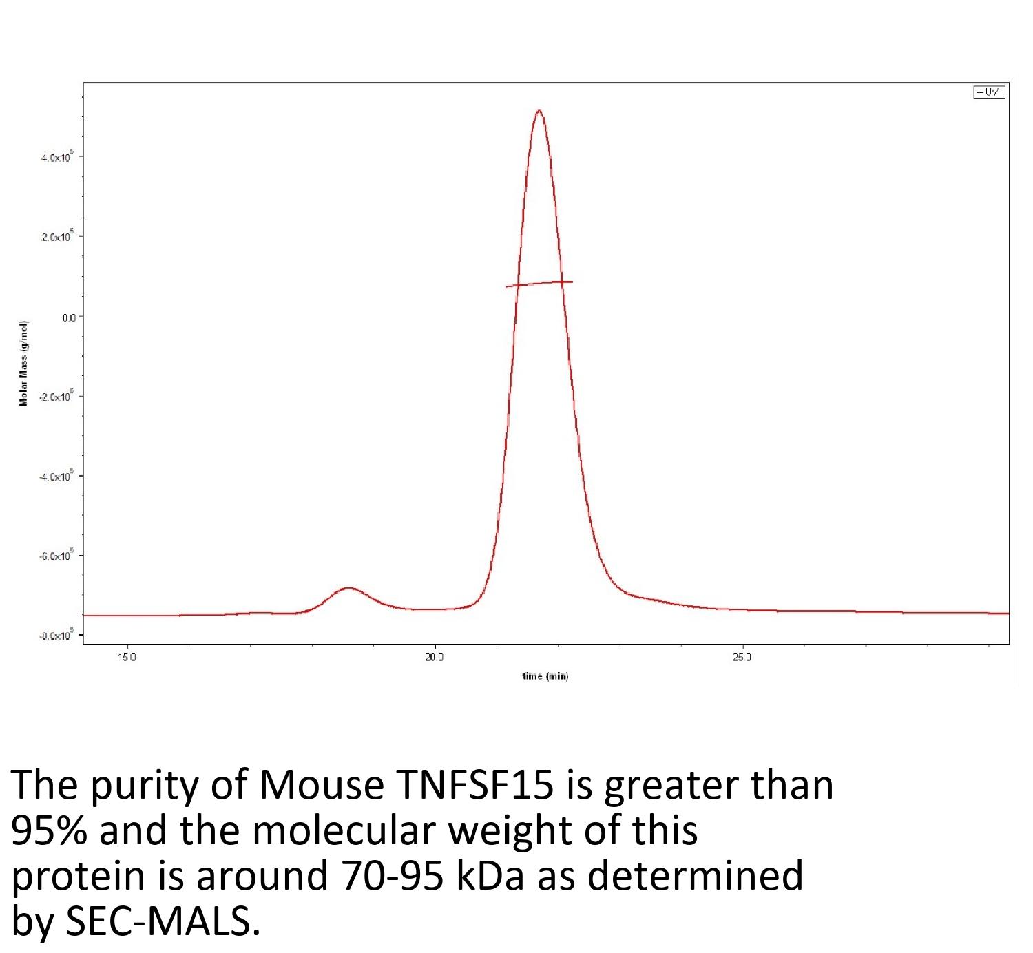 Recombinant Mouse TNFSF15 Protein is expressed from HEK293 with His tag and Avi tag at the N-Terminus.It contains Ala61-Leu252.