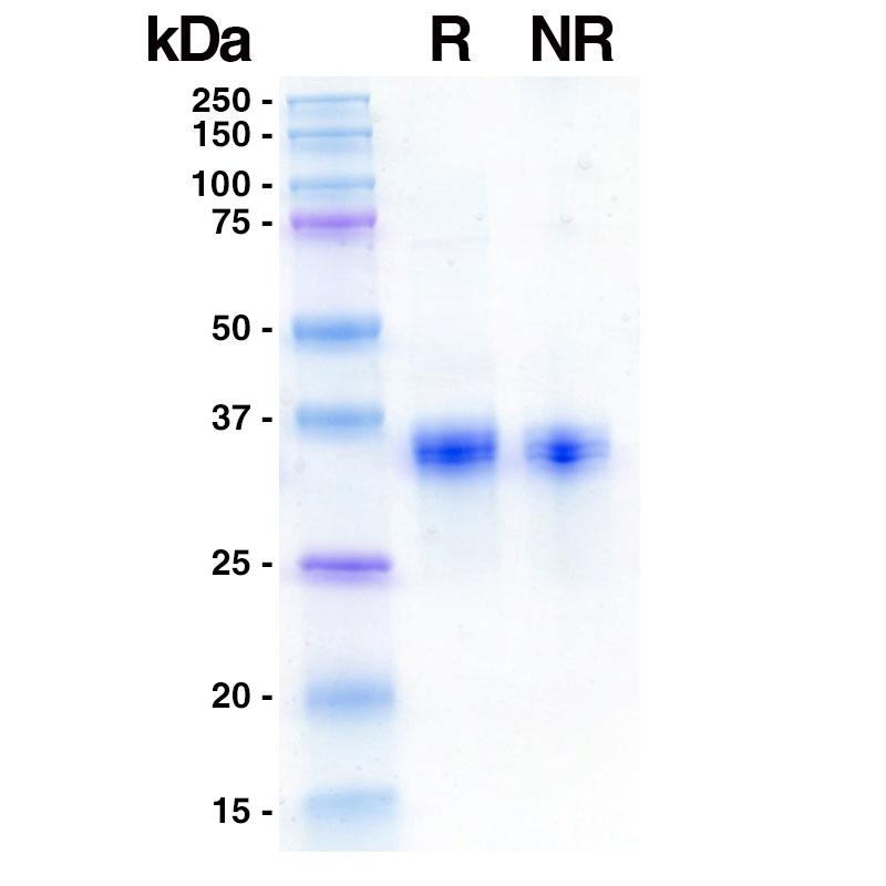 This lyophilized protein is stable for twelve months when stored at -20°C to -70°C. After aseptic reconstitution, this protein may be stored for one month at 2°C to 8°C or for three months at -20°C to -70°C in a manual defrost freezer. Avoid Repeated Freeze Thaw Cycles.