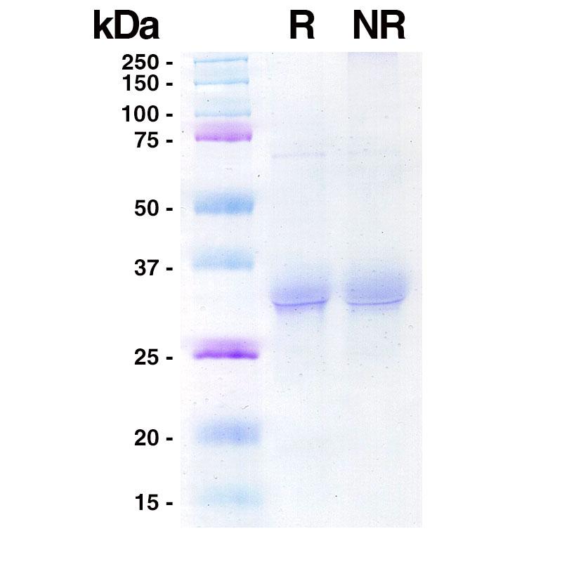 This lyophilized protein is 0.22 µm sterile filtered and lyophilized from 20 mM Sodium Phosphate, pH 7.8 + 0.5 mM DTT.