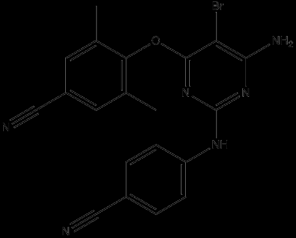 Smiles CC1=CC(=CC(=C1OC2=NC(=NC(=C2Br)N)NC3=CC=C(C=C3)C#N)C)C#N
