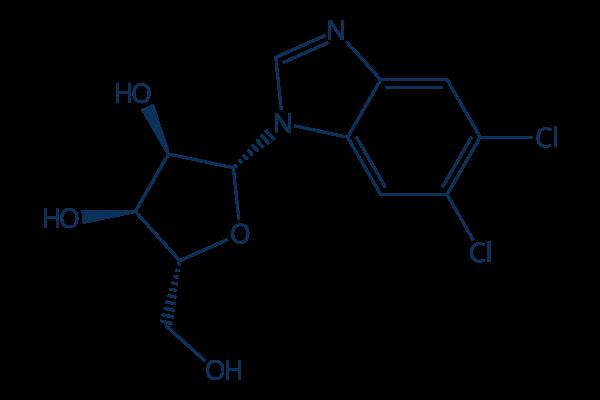 5, 6-Dichlorobenzimidazole riboside(DRB) is a nucleoside analog that inhibits several carboxyl-terminal domain (CTD) kinases including casein kinase II and CDKs. It trigger p53-dependent apoptosis of human colon adenocarcinoma cells without inducing genotoxic stress to healthy cells.