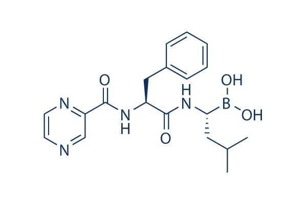Bortezomib is a potent 20S proteasome inhibitor with Ki of 0.6 nM. It exhibits favorable selectivity towards tumor cells over normal cells. Bortezomib (PS-341) inhibits NF-κB and induces ERK phosphorylation to suppress cathepsin B and inhibit the catalytic process of autophagy in ovarian cancer and other solid tumors.