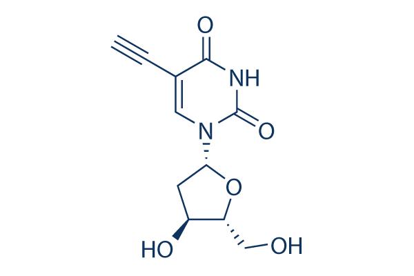 EdU (5-Ethynyl-2'-deoxyuridine), a thymidine analogue, which can be incorporated into cellular DNA and the subsequent reaction of EdU with a fluorescent azide in a copper-catalyzed [3+2] cycloaddition ("Click" reaction) are developed as a method for detection of DNA synthesis. 5-Ethynyl-2'-deoxyuridine is an alkyl chain-based PROTAC linker that is applicable to the synthesis of PROTACs.