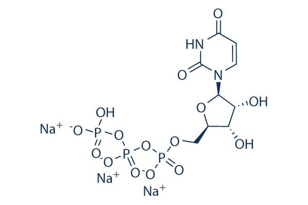 Uridine-5'-triphosphate (UTP) is a pyrimidine nucleoside triphosphate and a substrate for the synthesis of RNA during transcription.