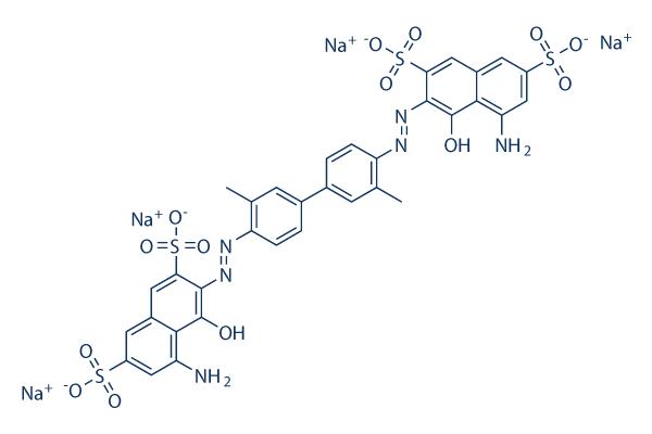 Smiles [Na+].[Na+].[Na+].[Na+].CC1=C(C=CC(=C1)C2=CC(=C(C=C2)N=NC3=C(O)C4=C(N)C=C(C=C4C=C3[S]([O-])(=O)=O)[S]([O-])(=O)=O)C)N=NC5=C(O)C6=C(N)C=C(C=C6C=C5[S]([O-])(=O)=O)[S]([O-])(=O)=O