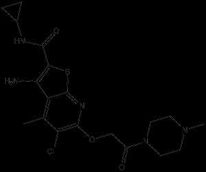 Chemical Name: 3-amino-5-chloro-N-cyclopropyl-4-methyl-6-[2-(4-methyl-1-piperazinyl)-2-oxoethoxy]-thieno[2, 3-b]pyridine-2-carboxamide