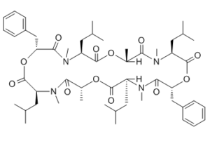 Description: PF-1022A is a novel and potent N-methylated cyclooctadepsipeptides (CODPs) with excellent anthelmintic properties and acts as an ionophore. PF 1022A showed strong anthelmintic activities against Ascaridia galli in chickens. PF1022A is a novel anthelmintic that binds to the latrophilin-like transmembrane receptor important for pharyngeal pumping in nematodes. Furthermore, PF1022A binds to GABA receptors, which might contribute to the anthelmintic effect. Like other cyclodepsipeptides, PF1022A acts as an ionophore. In vitro, PF1022A showed low activity on embryonation but significantly inhibited egg hatch (10 and 100 ug/ml), whereas albendazole (10 and 100 ug/ml) revealed statistically significant inhibitions of both embryonation and egg hatch. PF1022A (1-100 ug/ml) completely inhibited larval movement at most examination points.