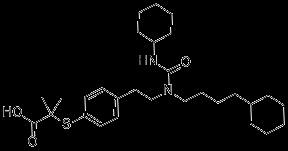 Description: GW7647 (GW-7647) is a novel, selective and potent agonist of human and murine PPARalpha4 with EC50s of 6 nM, 1.1 uM, and 6.2 uM for human PPARalpha, PPARgamma and PPARdelta, respectively. It was discovered using solid-phase, parallel-array synthesis and assayed for activity on the human PPAR subtypes. GW7647 was identified as a potent human PPARalpha agonist with approximately 200-fold selectivity over PPARgamma and PPARdelta, and potent lipid-lowering activity in animal models of dyslipidemia. GW7647 will be a valuable chemical tool for studying the biology of PPARalpha in human cells and animal models of disease.