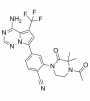 SMILES: NC1=NC=NN2C1=C(C(F)(F)F)C=C2C3=CC=C(C#N)C(N4CCN(C(C)=O)C(C)(C)C4=O)=C3