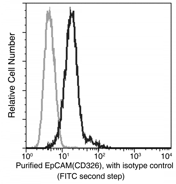 This antibody was produced from a hybridoma resulting from the fusion of a mouse myeloma with B cells obtained from a mouse immunized with purified, recombinant Human EpCAM / TROP-1 / TACSTD1 (rh EpCAM / TROP-1 / TACSTD1; Catalog#10694-H08H; NP_002345.1; Met1-Lys265). The IgG fraction of the cell culture supernatant was purified by Protein A affinity chromatography.