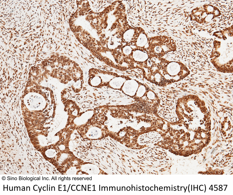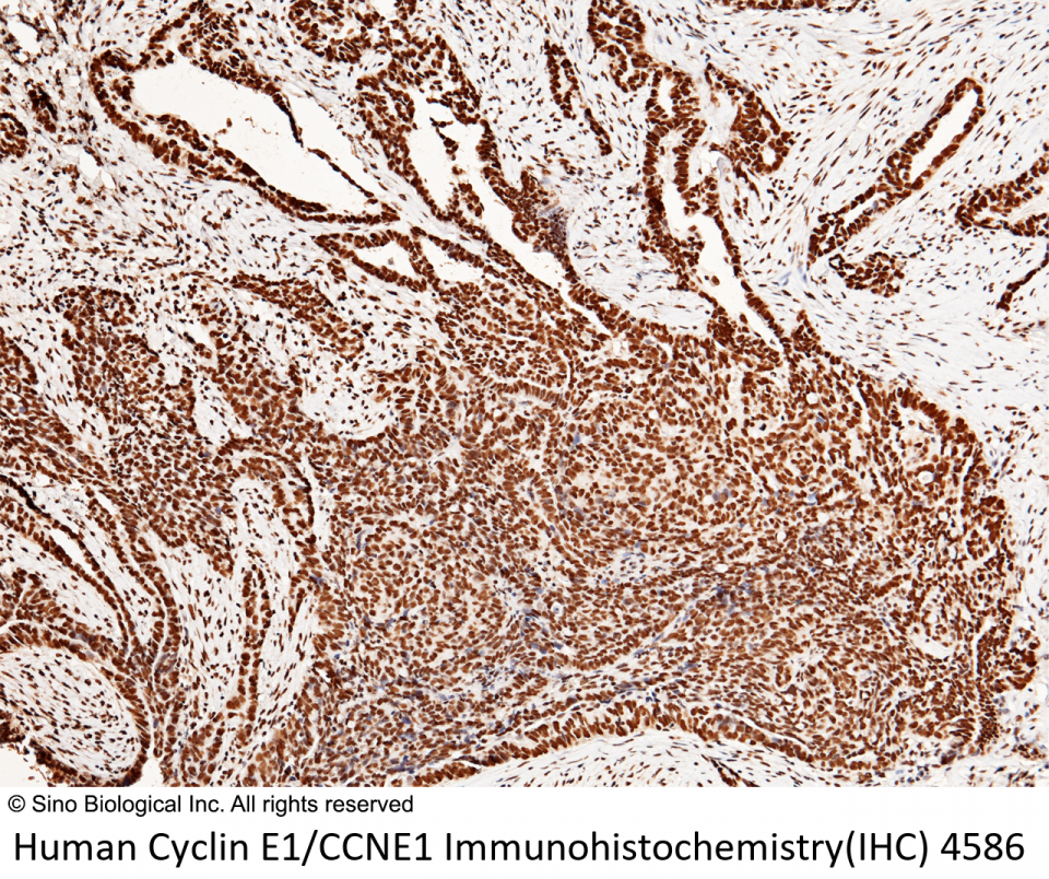 This antibody was produced from a hybridoma resulting from the fusion of a mouse myeloma with B cells obtained from a mouse immunized with purified, recombinant Human CCNE1 / Cyclin-E1 (rh CCNE1 / Cyclin-E1; Catalog#10902-H07B; NP_001229.1; Met1-Ala410). The IgG fraction of the cell culture supernatant was purified by Protein A affinity chromatography.