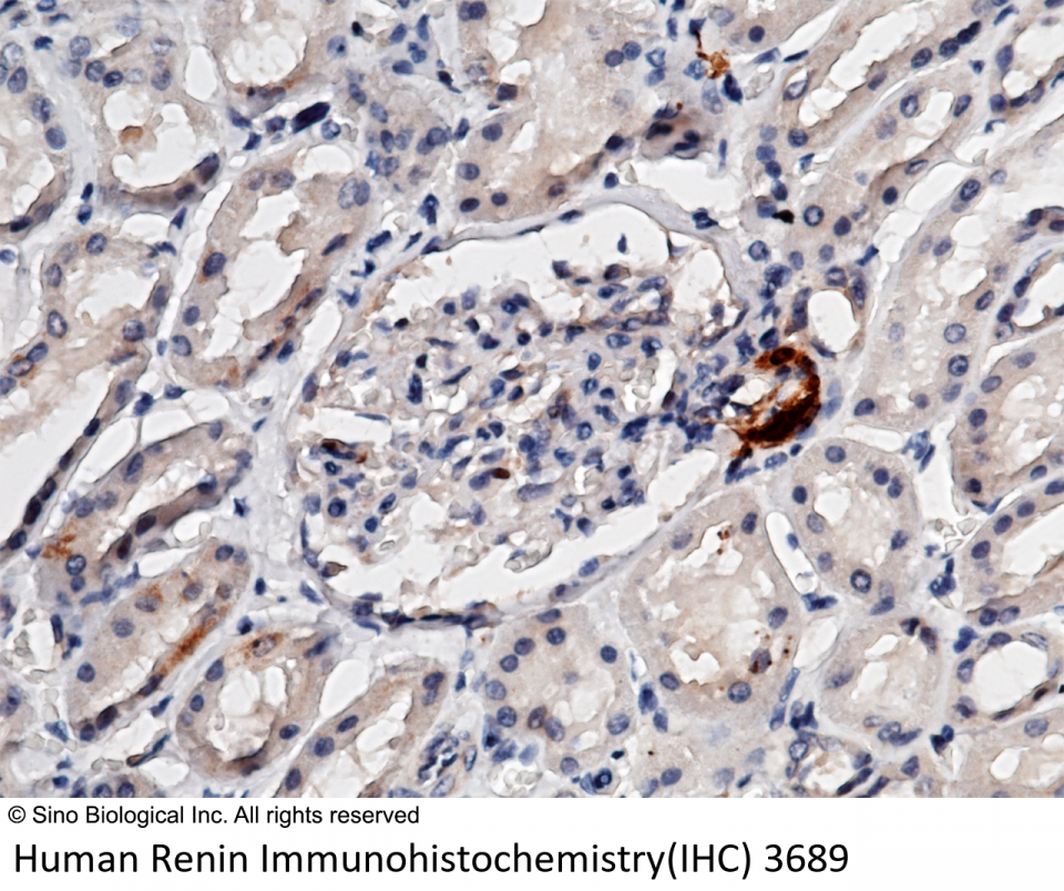 This antibody was obtained from a rabbit immunized with purified, recombinant Human Renin (rh Renin; Catalog#10969-H08H; NP_000528.1; Met 1-Arg 406).