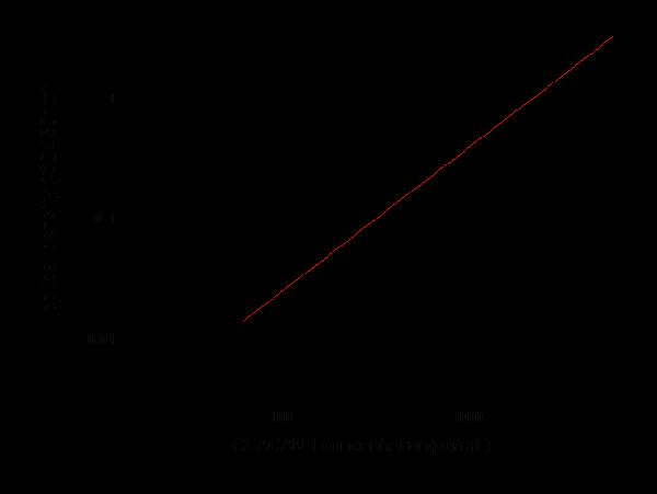 Sensitivity The minimum detectable dose of Human CEACAM1 / CD66a was determined to be approximately 93.75 pg/ml. This is defined as at least three times standard deviations above the mean optical density of 10 replicates of the zero standard.