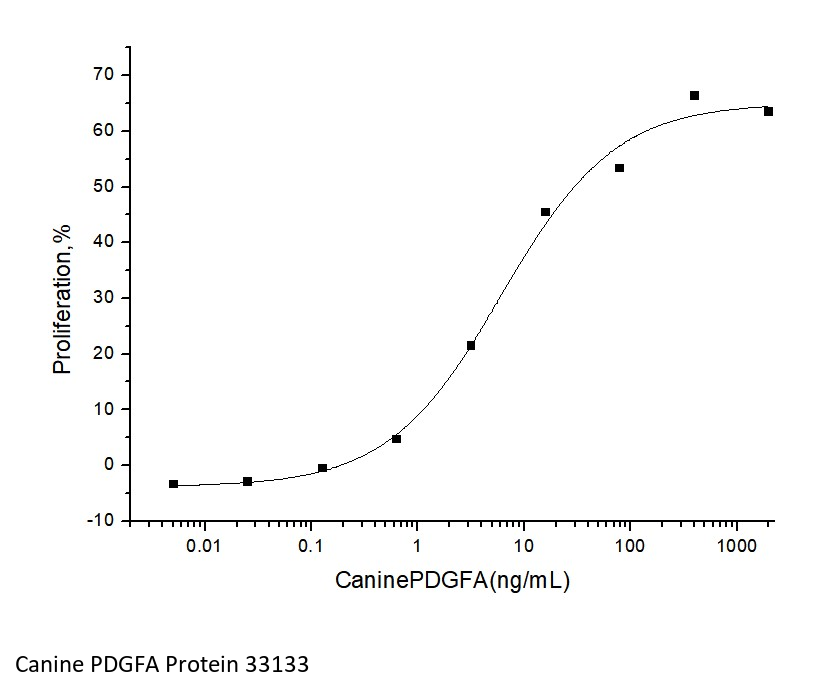 A DNA sequence encoding the canine PDGFA (NP_001177101.1) (Ser87-Arg196) was expressed with the Fc region of human IgG1 at the N-terminus.