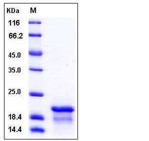 The recombinant human NPM1 consisting of 161 amino acids and has a calculated molecular mass of 17.8 kDa. It migrates as an approximately 20 kDa band in SDS-PAGE under reducing conditions.