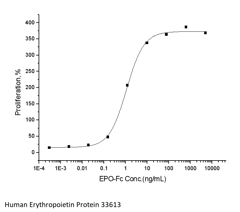 A DNA sequence encoding the human EPO (NP_000790.2) (Met1-Arg193) was expressed with the Fc region of human IgG1 at the C-terminus.