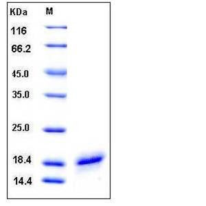 The recombinant human CD40L consists of 161 amino acids and has a calculated molecular mass of 17.7 kDa. It migrates as an 18 kDa band in SDS-PAGE under reducing conditions.