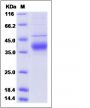 The recombinant human ANGPT4 comprises 242 amino acids and has a predicted molecular mass of 27.6 kDa. The apparent molecular mass of the protein is approximately 38 kDa in SDS-PAGE under reducing conditions due to glycosylation.