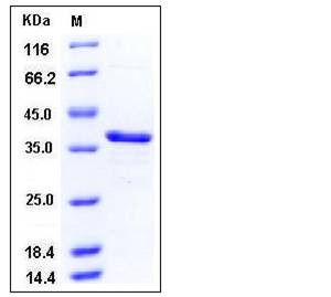 The recombinant human CA8 comprises 296 amino acids and has a predicted molecular mass of 33.8 kDa. It migrates as an approximately 37 kDa band in SDS-PAGE under reducing conditions.