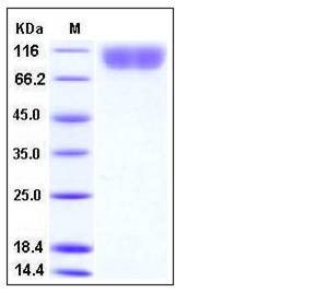 The secreted recombinant human PDGFRbeta comprises 510 amino acids and predicts a molecular mass of 57.6 kDa. It migrates as an approximately 95-100 kDa band in SDS-PAGE under reducing conditions.