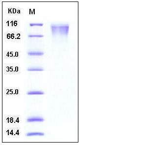 The secreted recombinant human LAMP3 consists of 365 amino acids with the predicted molecular mass of 39 kDa. As a result of glycosylation, rh LAMP3 migrates as an approximately 70-90 kDa band in SDS-PAGE under reducing conditions.