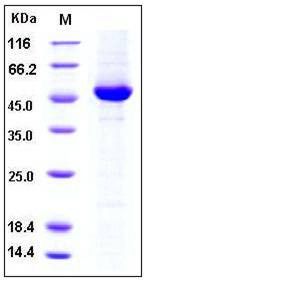 The recombinant human DDC consists of 490 amino acids and predicts a molecular mass of 55 kDa. It migrates as an approximately 48 kDa protein in SDS-PAGE under reducing conditions.