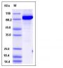 The recombinant human NAMPT/GST chimera consists of 728 amino acids and has a calculated molecular mass of 83.3 kDa. It migrates as an approximately 75 kDa band in SDS-PAGE under reducing conditions.