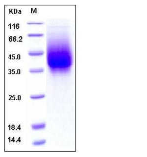 The secreted recombinant human RSV-G comprises 242 amino acids and has a predicted molecular mass of 26.3 kDa. As a result of glycosylation, the apparent molecular mass of RSV protein G is approximately 40-55 kDa in SDS-PAGE under reducing conditions.