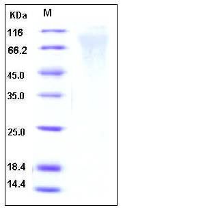 The secreted recombinant human RSV-G comprises 242 amino acids and has a predicted molecular mass of 26.3 kDa. As a result of highly glycosylation, the apparent molecular mass of RSV protein G is approximately 60-90 kDa in SDS-PAGE under reducing conditions.