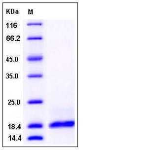 The recombinant human PLA2G2A consists of 135 amino acids and predictes a molecular mass of 15.4 kDa. In SDS-PAGE under reducing conditions, rh PLA2G2A migrates as an approximately 19 kDa band due to glycosylation.