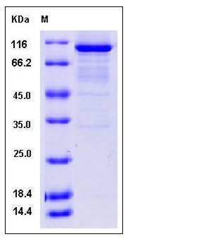 The recombinant human DCLK1/GST chimera consists of 942 amino acids and has a calculated molecular mass of 106 KDa. It migrates as an approximately 105 KDa band as predicted in SDS-PAGE under reducing conditions.