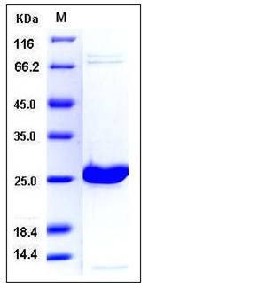 The recombinant human UCHL1 consisting of 229 amino acids and migrates as an 25.6 kDa band in SDS-PAGE under reducing conditions as predicted.