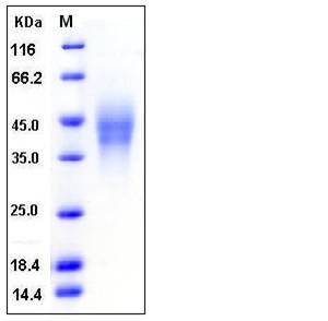 The recombinant human CD300C consists of 166 amino acids and predictes a molecular mass of 18.4 kDa. In SDS-PAGE under reducing conditions, the apparent molecular mass of rh CD300C is approximately 40-45 kDa due to glycosylation.