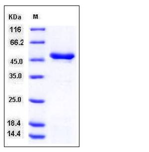 The recombinant human TPH1 consisting of 458 amino acids and has a calculated molecular mass of 52.7 kDa. It migrates as an approximately 48 kDa band in SDS-PAGE under reducing conditions.