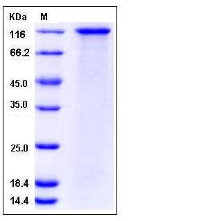 The recombinant human SORCS1 consists of 1000 amino acids and predictes a molecular mass of 113 kDa. In SDS-PAGE under reducing conditions, the apparent molecular mass of rhSORCS1 is approximately 130 kDa due to glycosylation