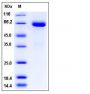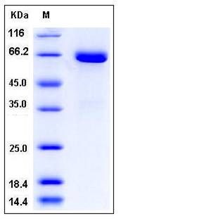The recombinant human EPHB1 consists of 534 amino acids and has a calculated molecular mass of 60 kDa as estimated in SDS-PAGE under reducing conditions.