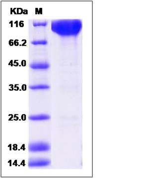 The recombinant human KIT/Fc comprises 729 amino acids and has a predicted molecular mass of 82 kDa. The apparent molecular mass of the protein is approximately 93-115 kDa in SDS-PAGE under reducing conditions.