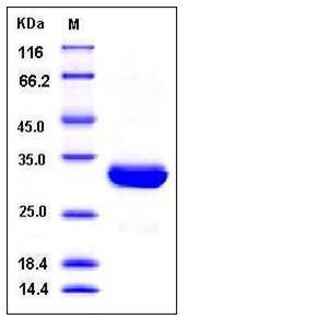 The recombinant human SCGN consisting of 286 amino acids and has a calculated molecular mass of 33.4 kDa. It migrates as an approximately 32 kDa band in SDS-PAGE under reducing conditions.