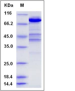 The recombinant human EZR consists of 601 amino acids and predicts a molecular mass of 71.2 KDa. It migrates as an approximately 82 KDa band in SDS-PAGE under reducing conditions.