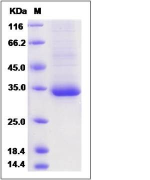 The recombinant human MSLN consists of 261 amino acids and predicts a molecular mass of 28.2 KDa. It migrates as an approximately 33 KDa band in SDS-PAGE under reducing conditions.