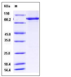 The recombinant human PTPRA (aa 174-793)/GST chimera consists of 857 amino acids and has a calculated molecular mass of 99 kDa. It migrates as an approximately 90 kDa band in SDS-PAGE under reducing conditions.