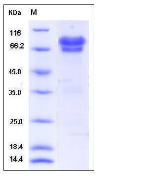The secreted recombinant human NGFR/Fc is a disulfide-linked homodimeric protein. The reduced monomer consists of 463 amino acids and has a predicted molecular mass of 50.6 kDa. The apparent molecular mass of rhNGFR/Fc monomer is approximately 70-80 kDa in SDS-PAGE under reducing conditions due to glycosylation.