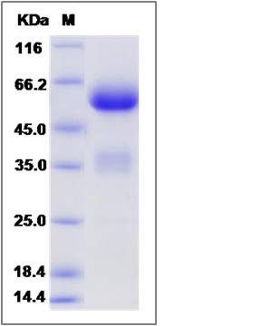 The recombinant human PIK3IP1/Fc is a disulfide-linked homodimer. The reduced monomer comprises 388 amino acids and has a predicted molecular mass of 42.7 kDa. The apparent molecular mass of the protein is approximately 55 kDa in SDS-PAGE under reducing conditions.
